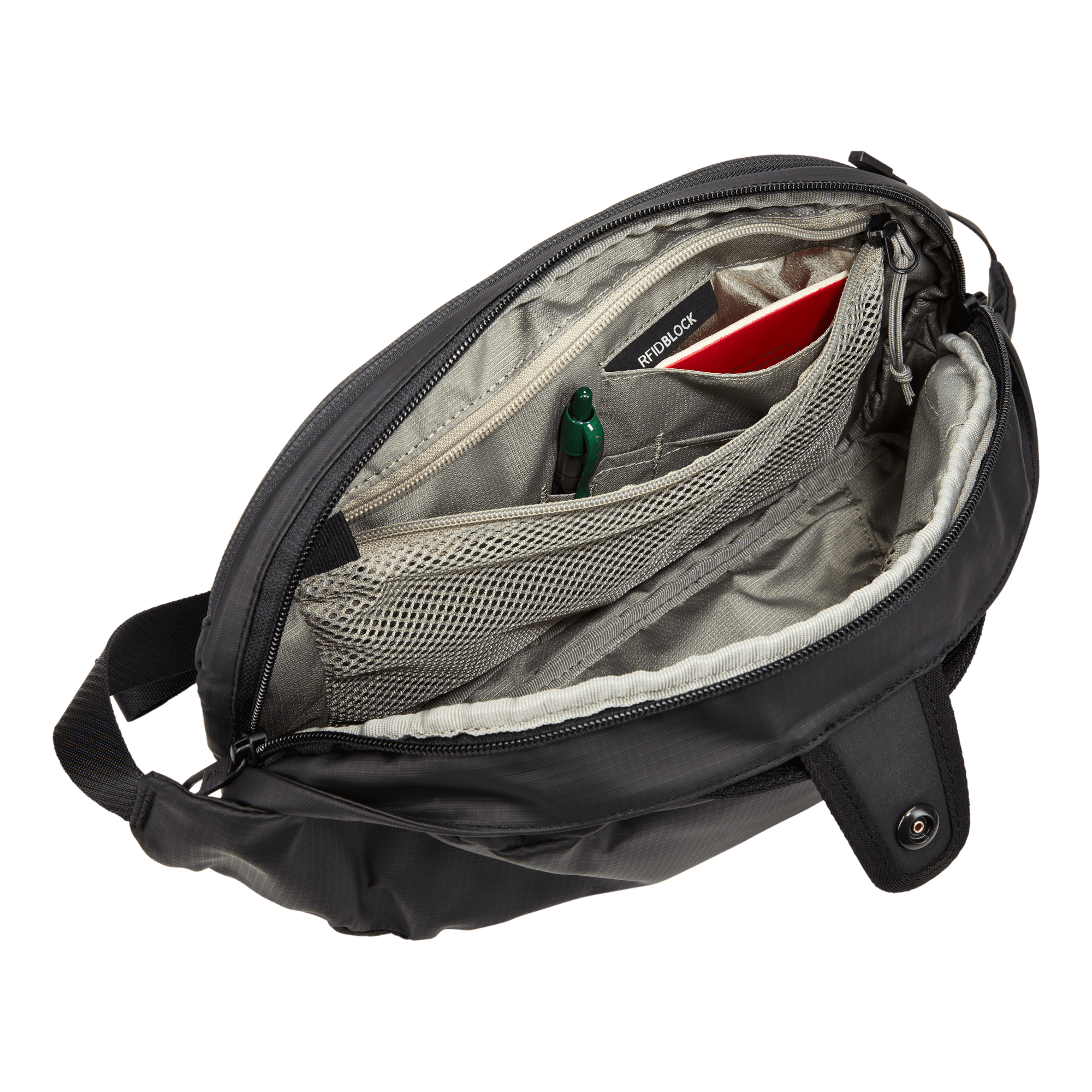 Kompakte, bluesign®-geprüfte Umhängetasche aus Recyclingmaterialien mit diebstahlsicherem Design und ordentlicher Aufbewahrung für wichtige Alltagsgegenstände.
